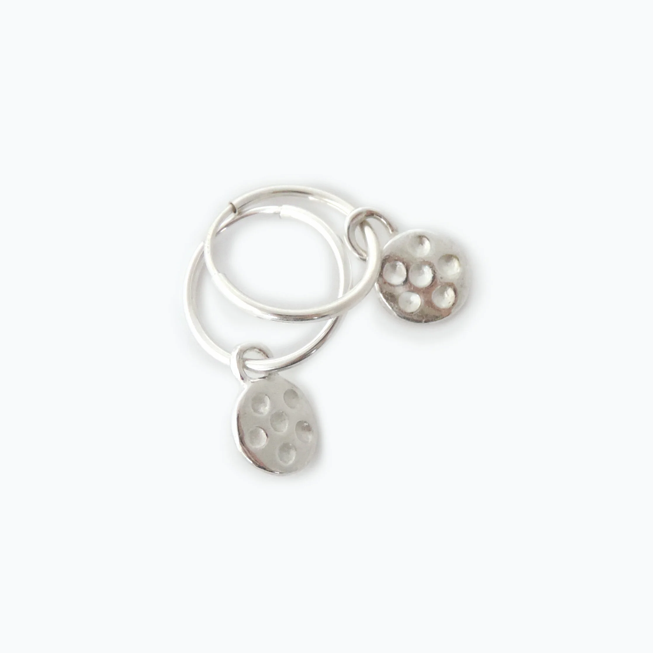 This is a simple earring that is easy to wear day in, day out. This is a re-design of my charm series from over 20 years ago. I was inspired by seed pods and their many different forms. The sterling silver seed hangs on a 14mm endless hoop for comfort and security.