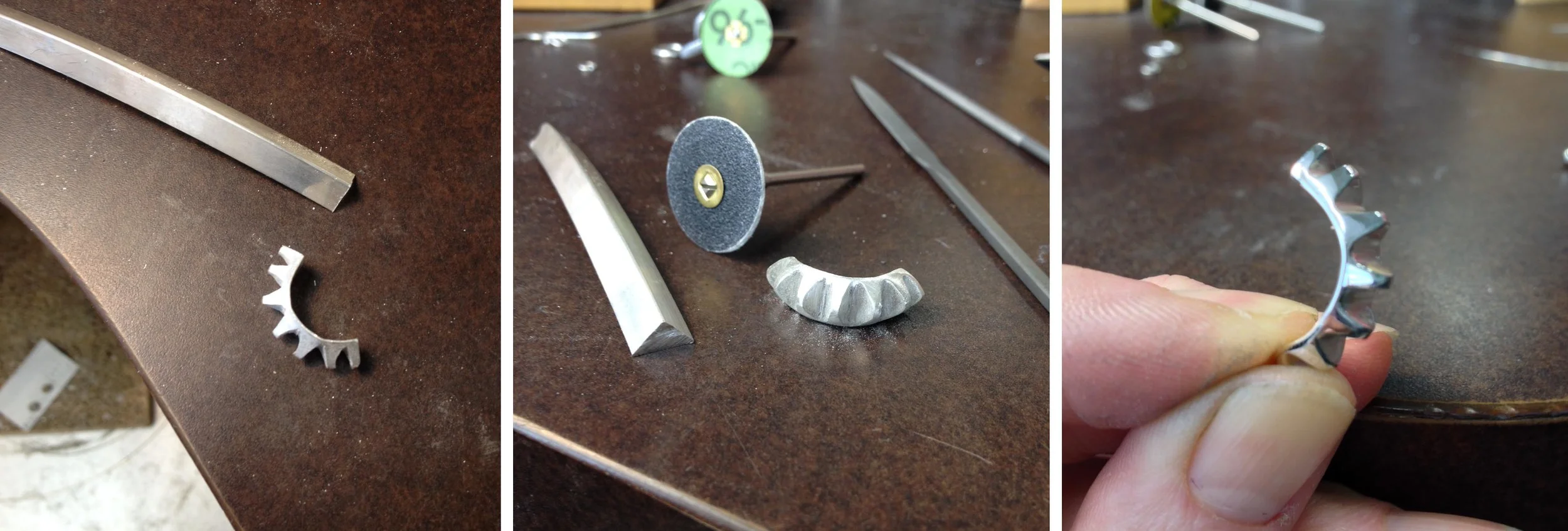 I can now look at what I made and think "where did that come from?" Well, there is a lot of trendy, graphic triangular jewelry around so maybe that was an influence. I just started winter cycling two weeks ago. Maybe the gears and cogs on my bike were the seed. Hmmmm, Christmas just finished and I DID eat a lot of chocolate- Toblerone chocolate. In the end, what really matters to me is do I like what I created. Is it pleasing of form, does it have visual interest, will it make a piece of jewelry others will like?